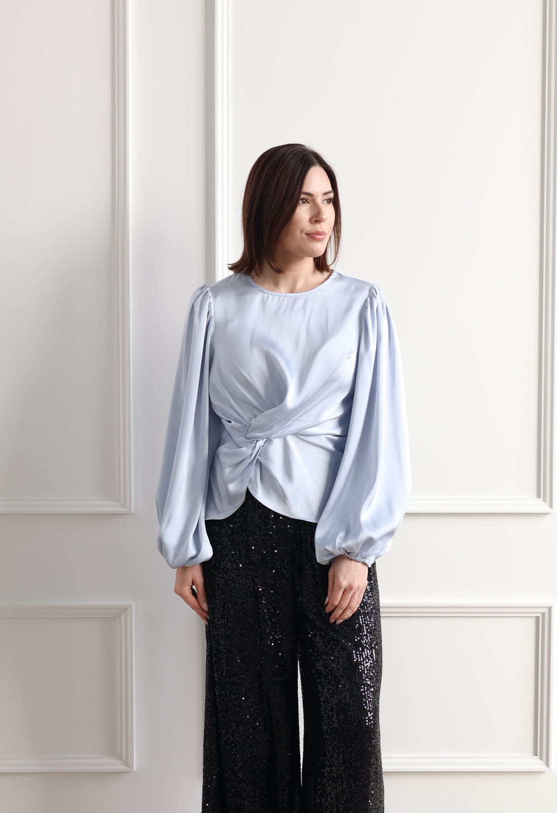 Elevate your workday wardrobe with this luxurious satin blouse in cream. The thoughtfully placed twist detail creates a flattering silhouette that works beautifully in professional settings. Dress it down for the office or pair it with a sparkly bottom for an effortless holiday-ready look.