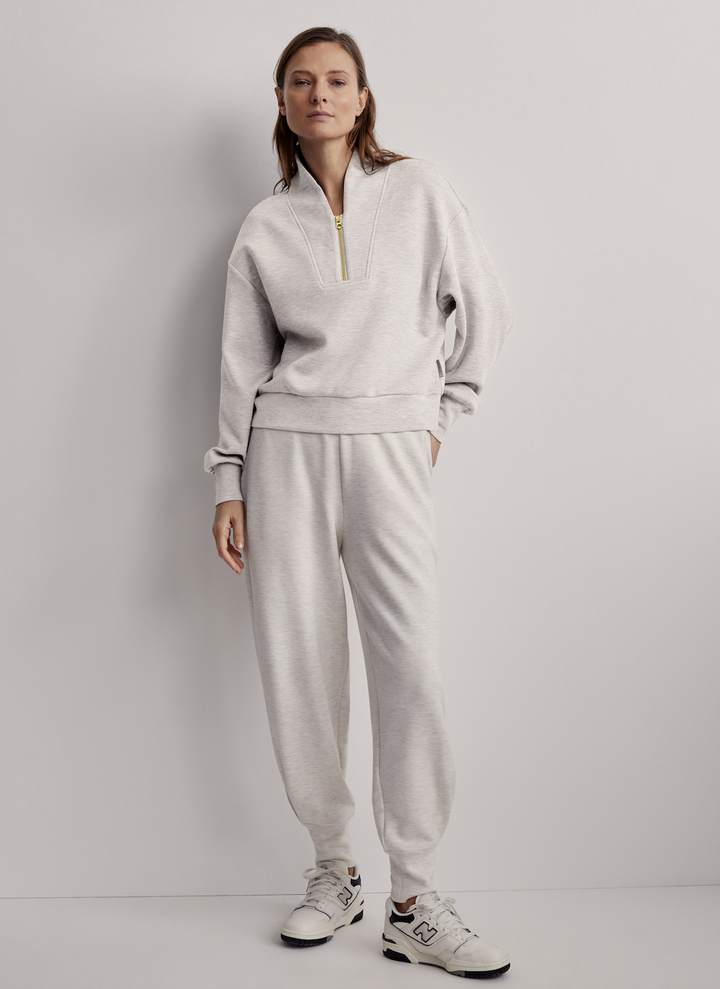 The epitome of laid-back luxury. Cut in VARLEY's lightweight double-faced fabrication, this style features dropped shoulders and deep cuffs.