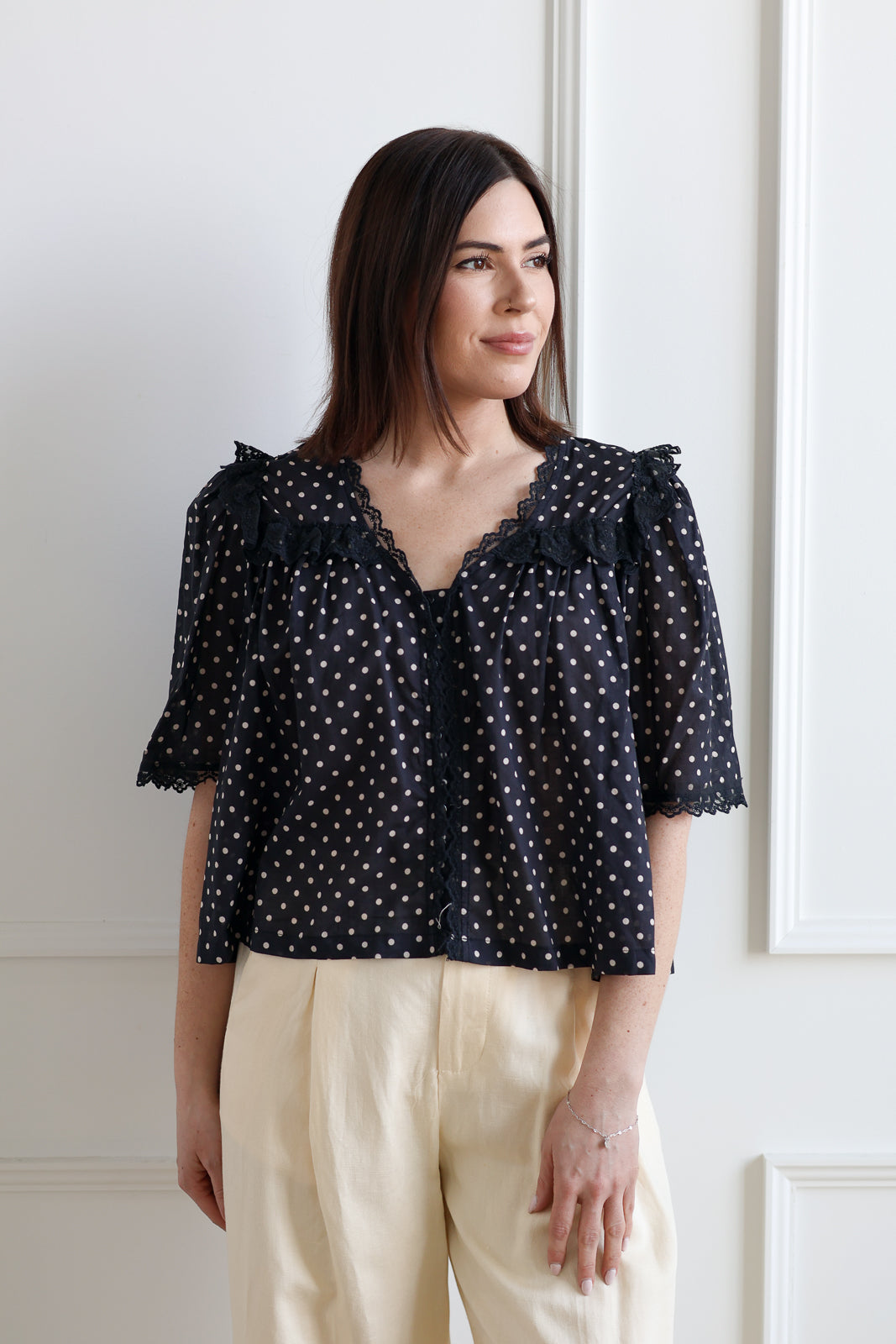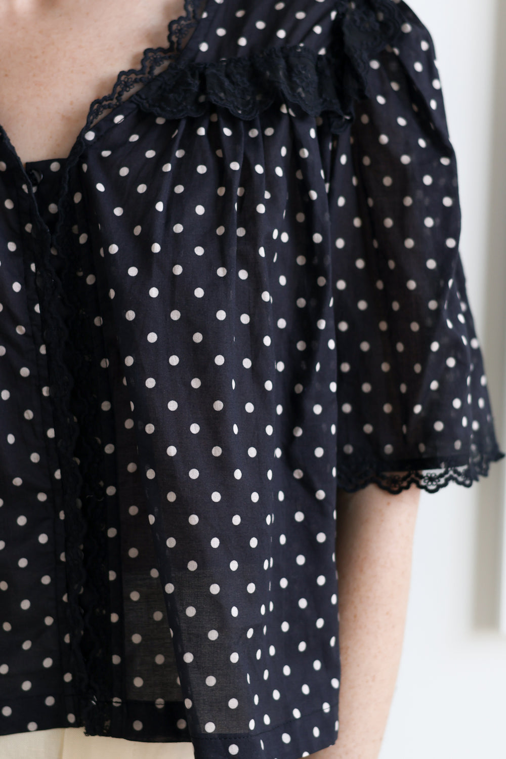 Short Sleeve Lace Blouse - Polka Dot