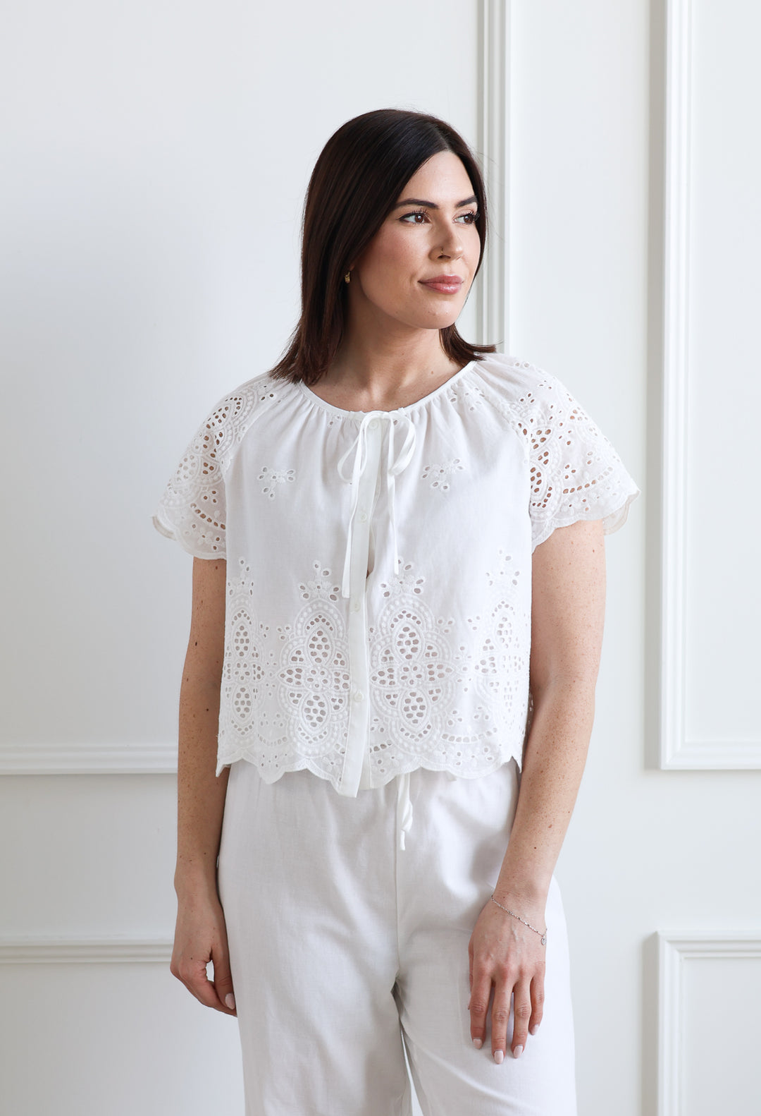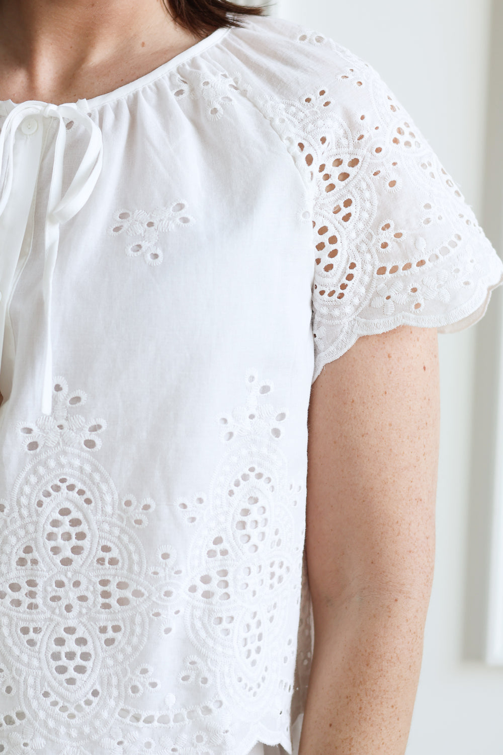 Short Sleeve Lace Blouse - White