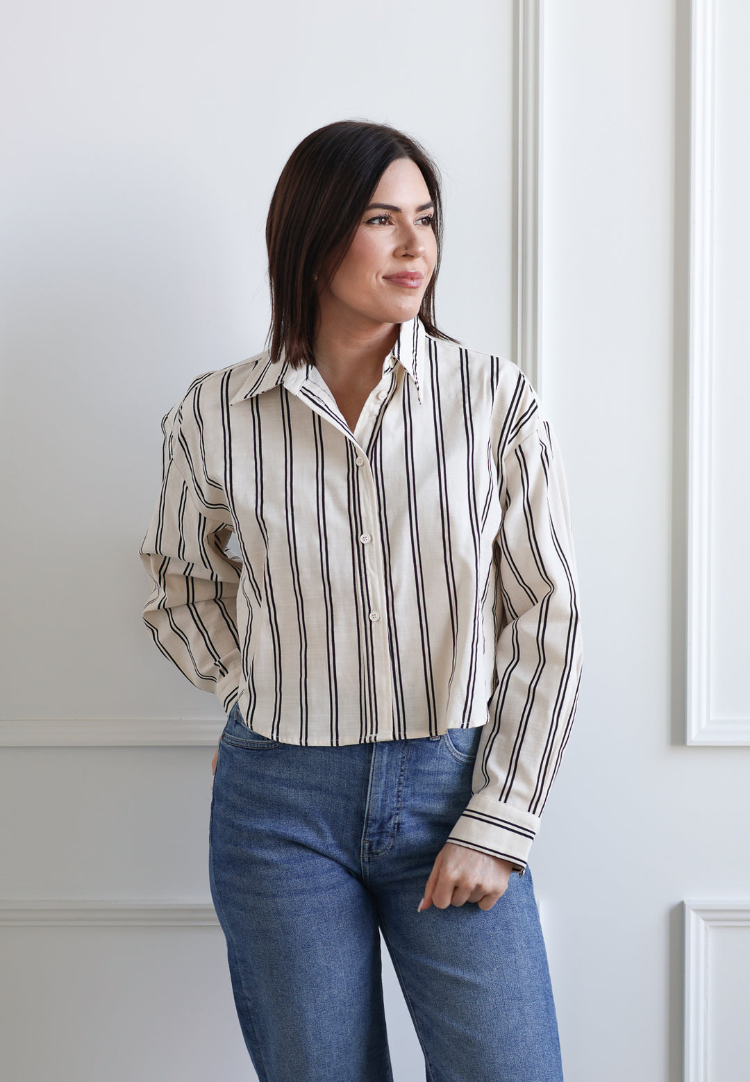 Cropped Striped Oxford