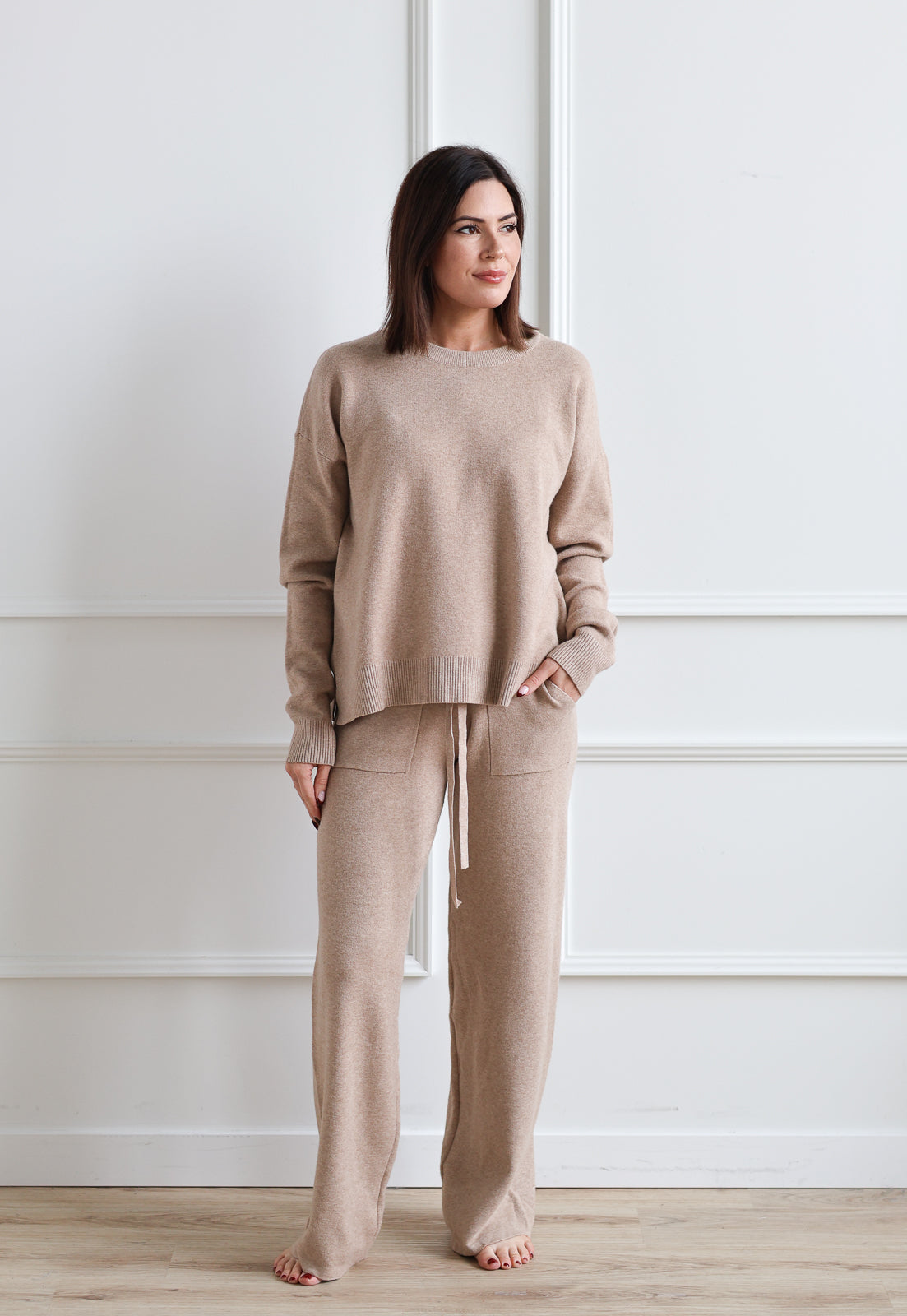 Stay cozy and stylish this winter with our Soft Crew Knit in taupe. The matching knit pant completes the look for a chic and comfortable outfit. Keep warm without sacrificing style.