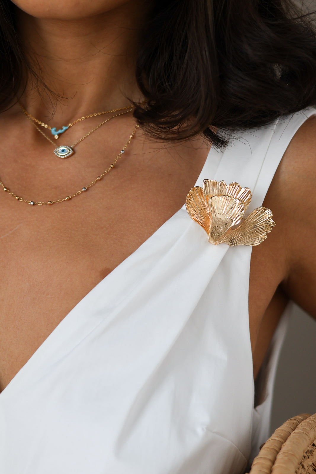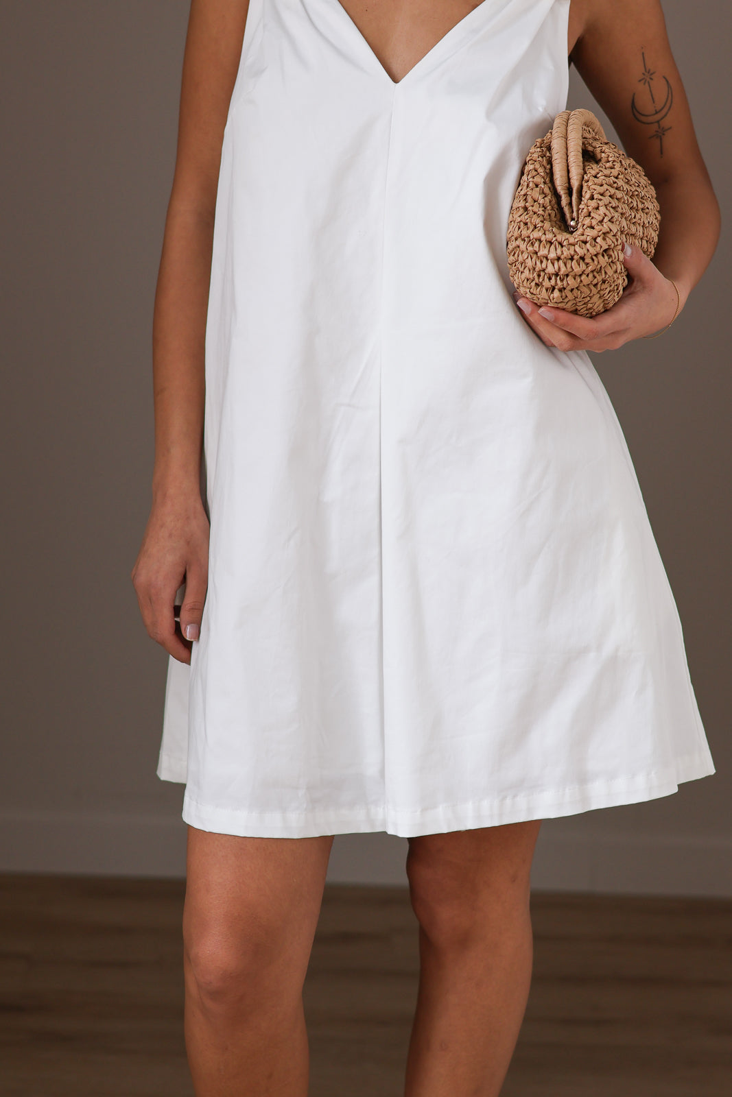 The Nerida Poplin Mini embodies refined simplicity with understated luxury. Crafted from crisp poplin, this mini dress features carefully placed gold embellishments that add a touch of glamour without overwhelming the silhouette. Designed for the discerning traveler, it transitions seamlessly from beach days to evening occasions—ideal for brides seeking an elegant alternative to traditional resort wear, or anyone desiring a polished look after sunset.