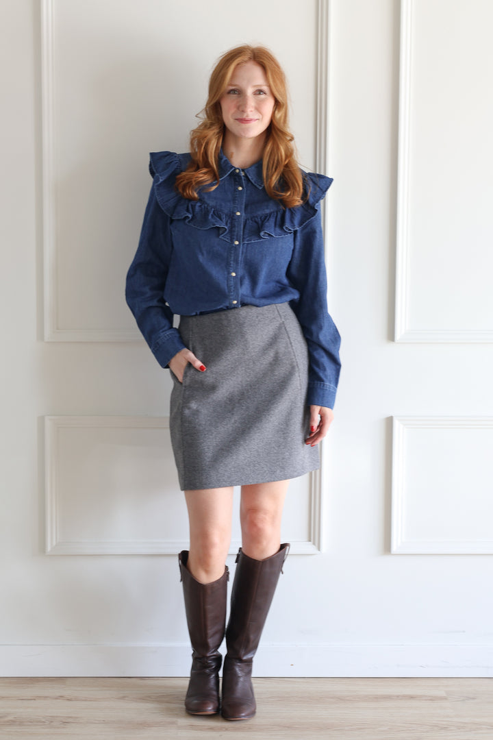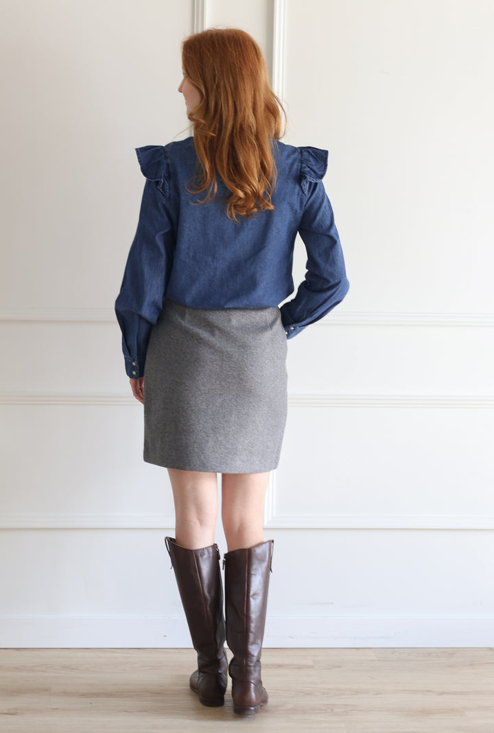 Add a touch of western charm to your work wardrobe with the Vero Moda Uli Frill Denim Blouse. Its delicate frill detailing brings a playful edge to classic denim, making it perfect for tucking into trousers for a stylish yet professional look.
