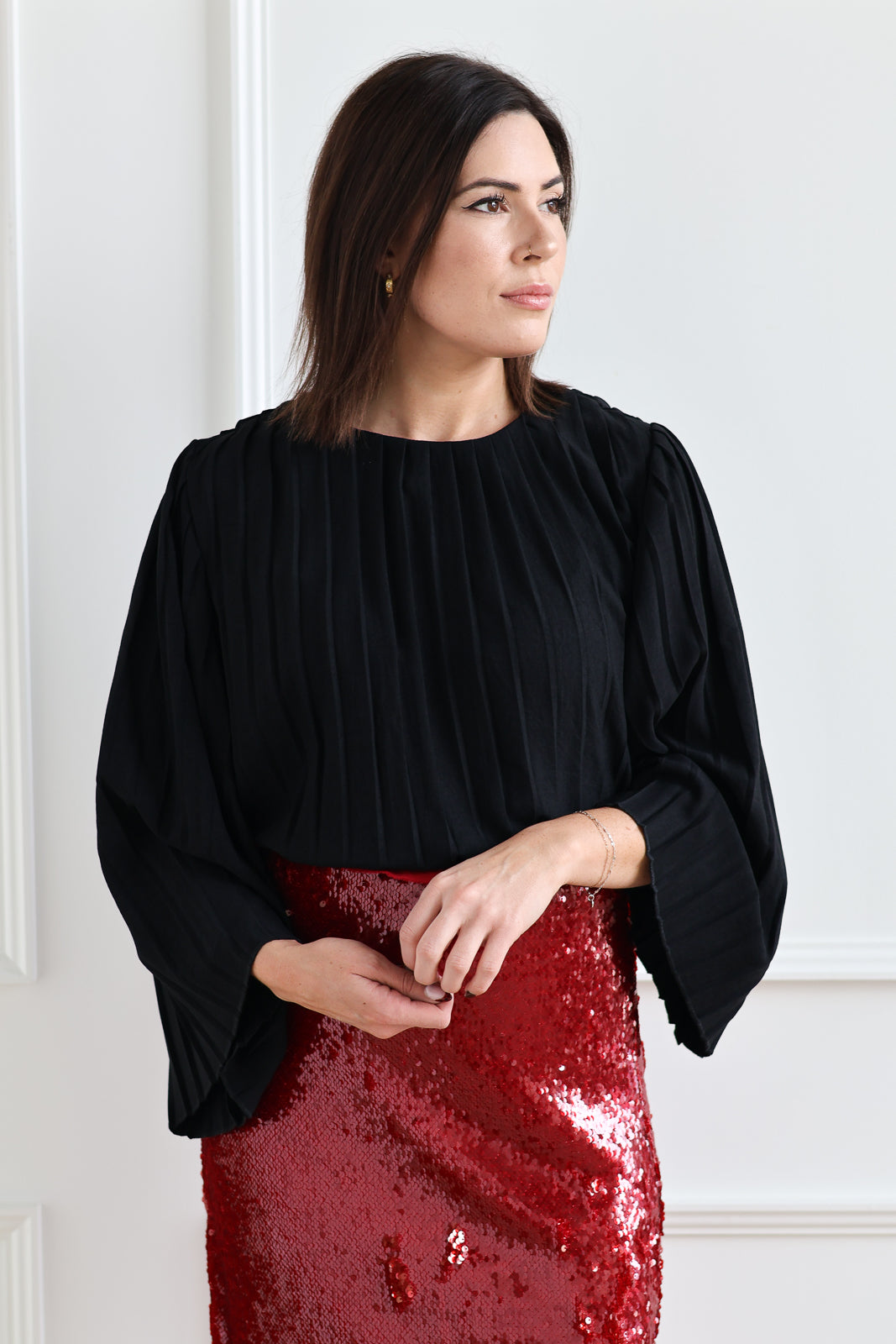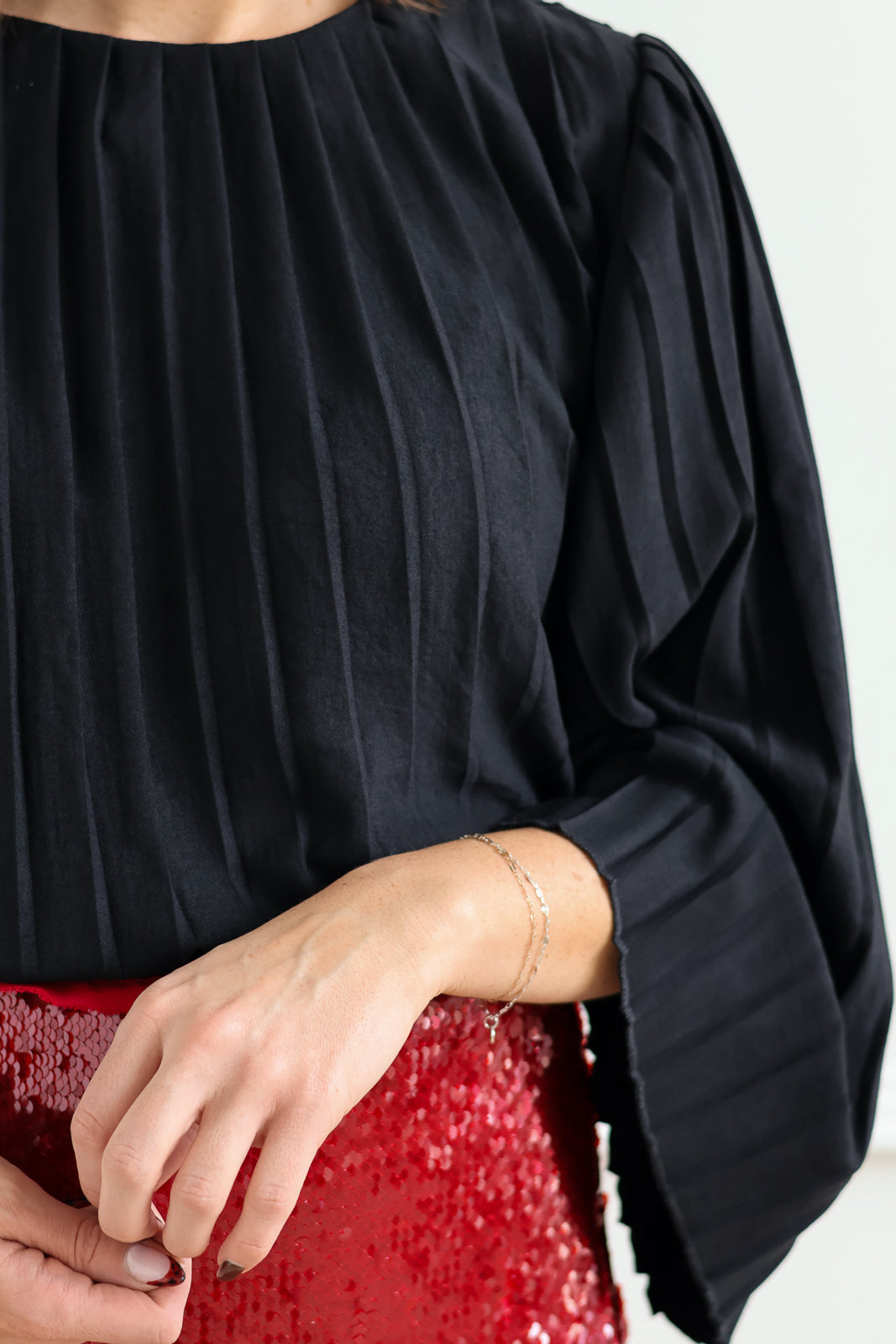 The Janse Pleated Blouse brings effortless sophistication to your everyday wardrobe. Featuring elegant pleating throughout and a charming tie detail at the back, this piece transitions seamlessly from casual to refined. Pair it with a slip skirt for an elevated look or style it with denim for relaxed polish. Perfect for hosting gatherings or simply elevating your day-to-day style with understated elegance.
