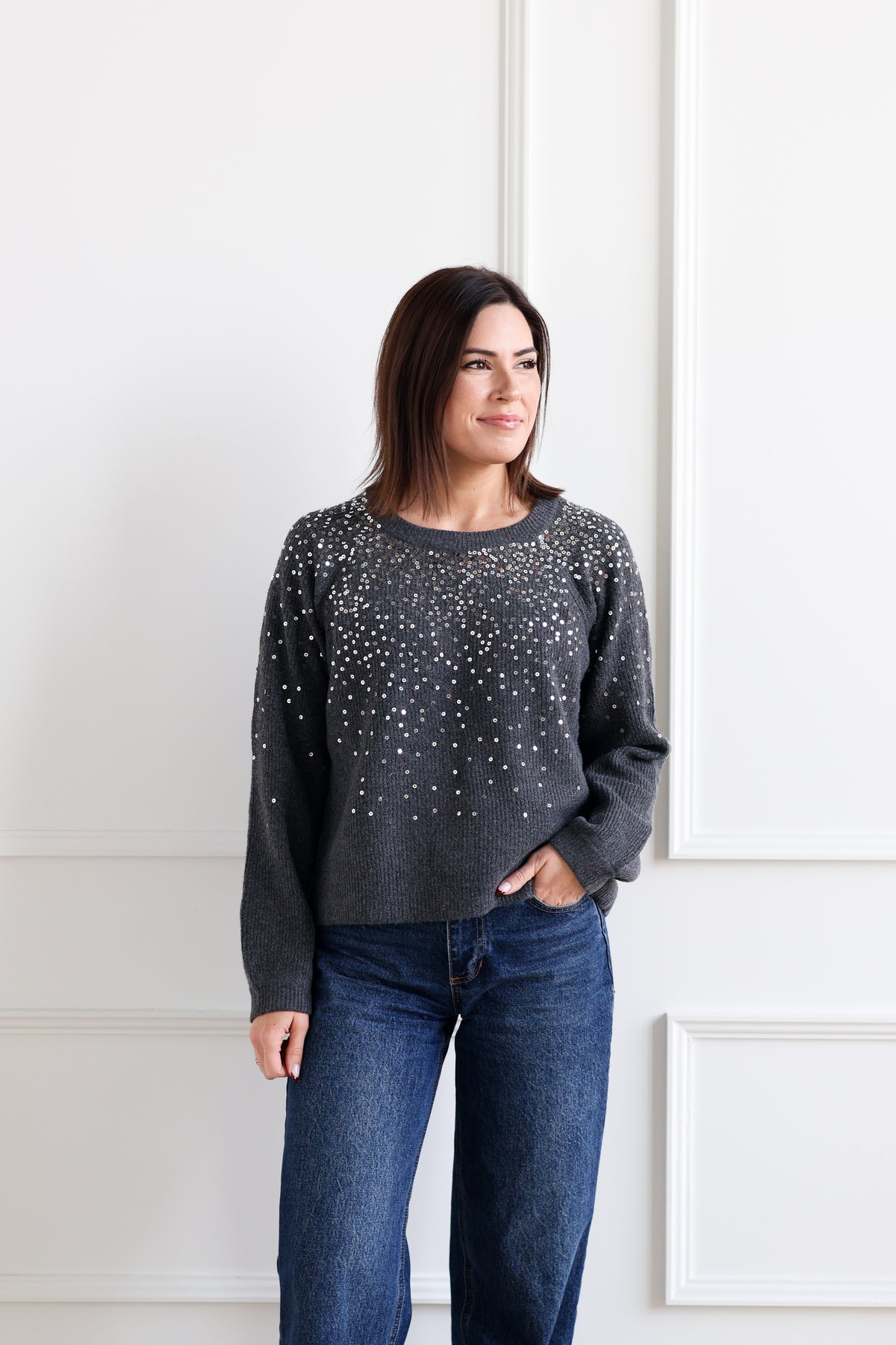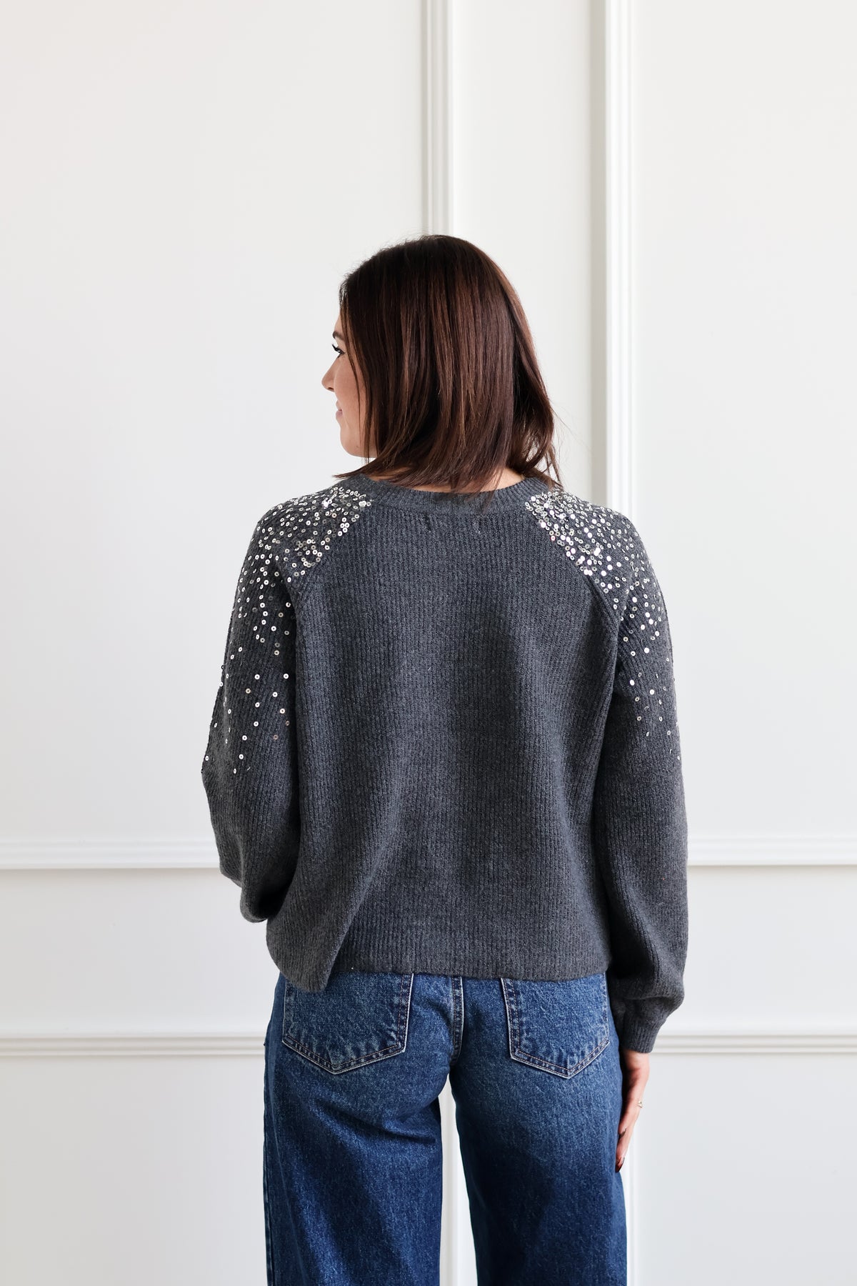 Elevate your hosting game with the Sparks Fly Knit, a sophisticated silver grey sweater that brings just the right amount of shimmer to any gathering. Delicate silver sequin detailing catches the light beautifully, adding understated glamour without overwhelming your look.