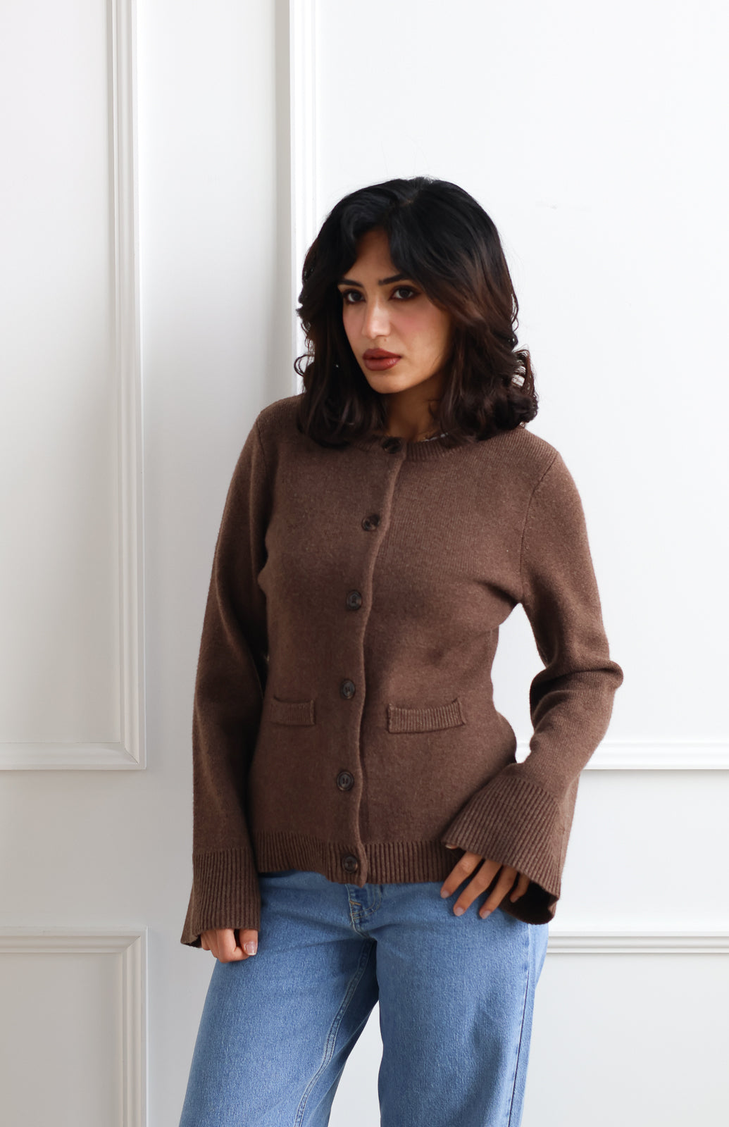 A button cardigan has been a trending topper for a while now and it's not going anywhere this spring! This style, when worn done up, cinches slightly at the waist to create more shape.