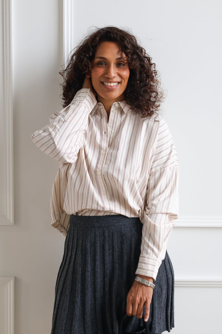 Elevate your wardrobe with the Vero Moda Paris Oxford Shirt. This red wine stripe is a timeless and versatile choice for any occasion. The perfect layering piece, this shirt is a must-have staple for your stylish and sophisticated look.