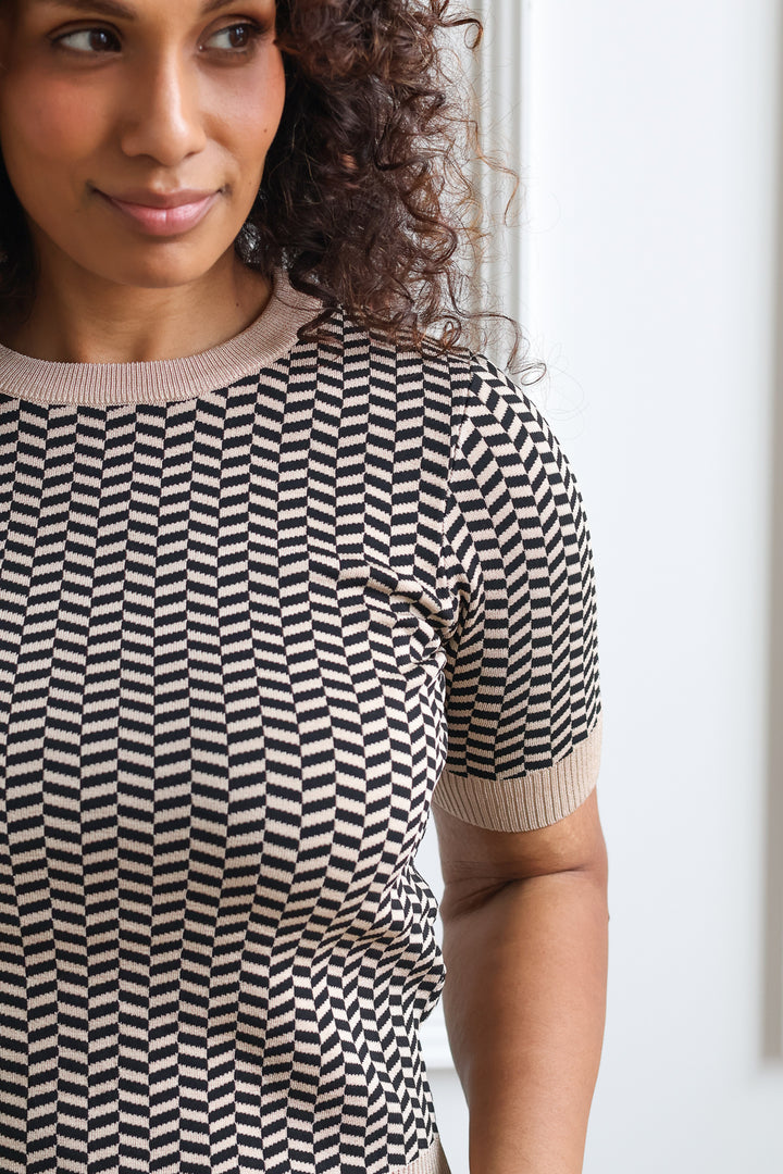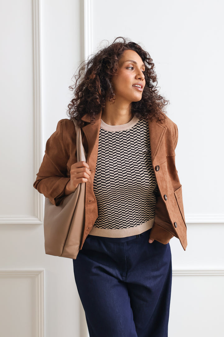 The Warren Knit Top features a stylish geometric print woven design that makes it an excellent choice for layering in your workwear wardrobe. Its lightweight fabric allows for comfortable wear throughout the day, while the pattern adds a modern touch to any outfit.