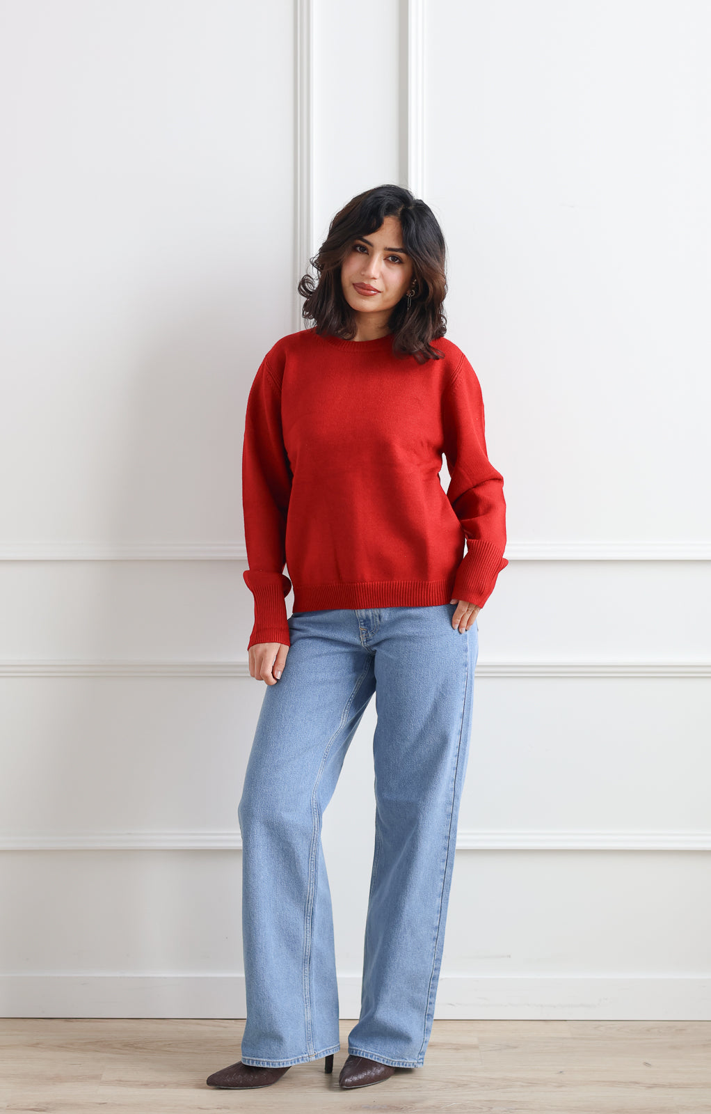 The Conrad Sweater brings warmth and vibrancy to your everyday wardrobe. This soft, luxuriously comfortable sweater in rich red is the perfect piece to add a confident pop of colour to neutral outfits or layer over your favourite basics.