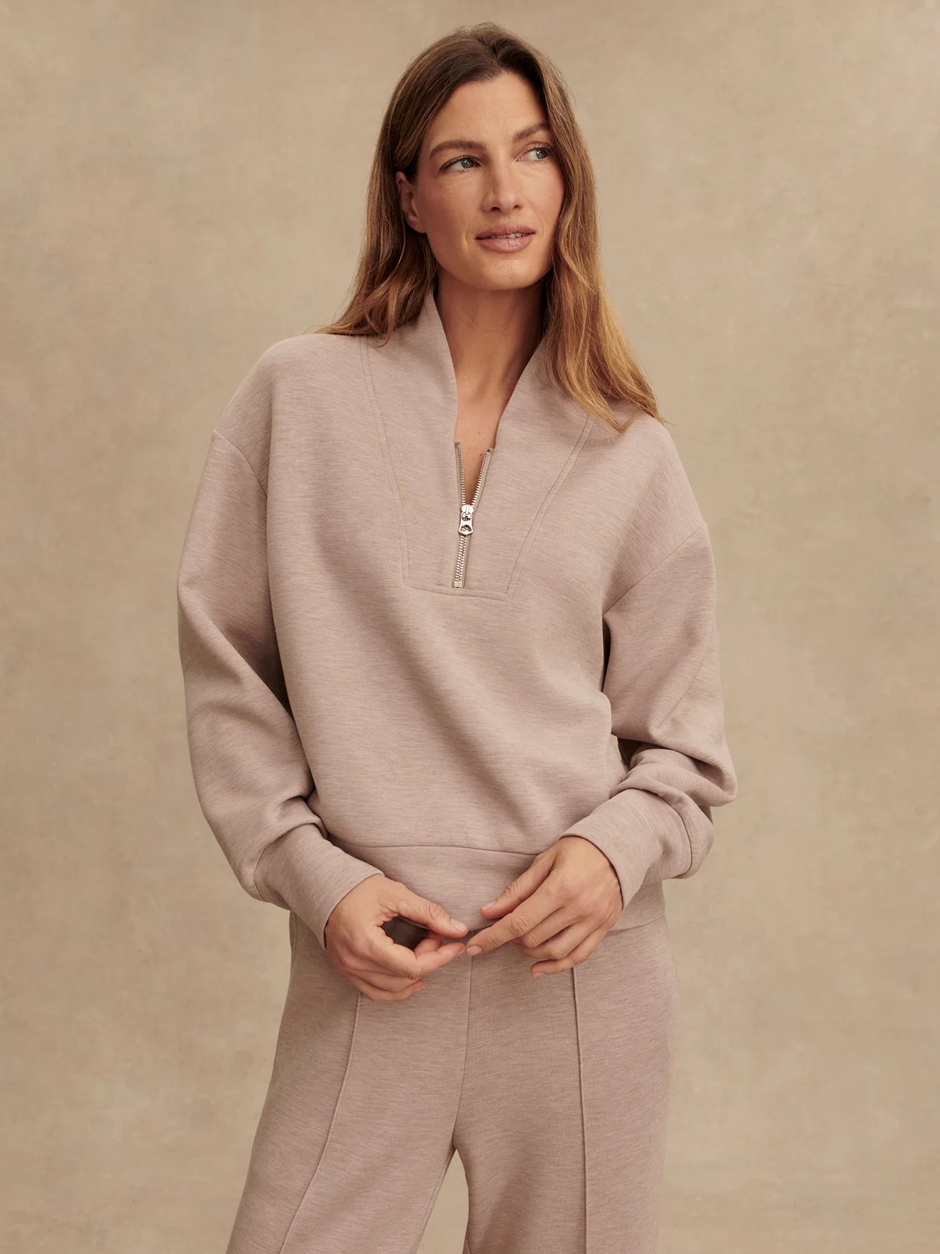The epitome of laid-back luxury. Cut in VARLEY's lightweight double-faced fabrication, this style features dropped shoulders and deep cuffs.
