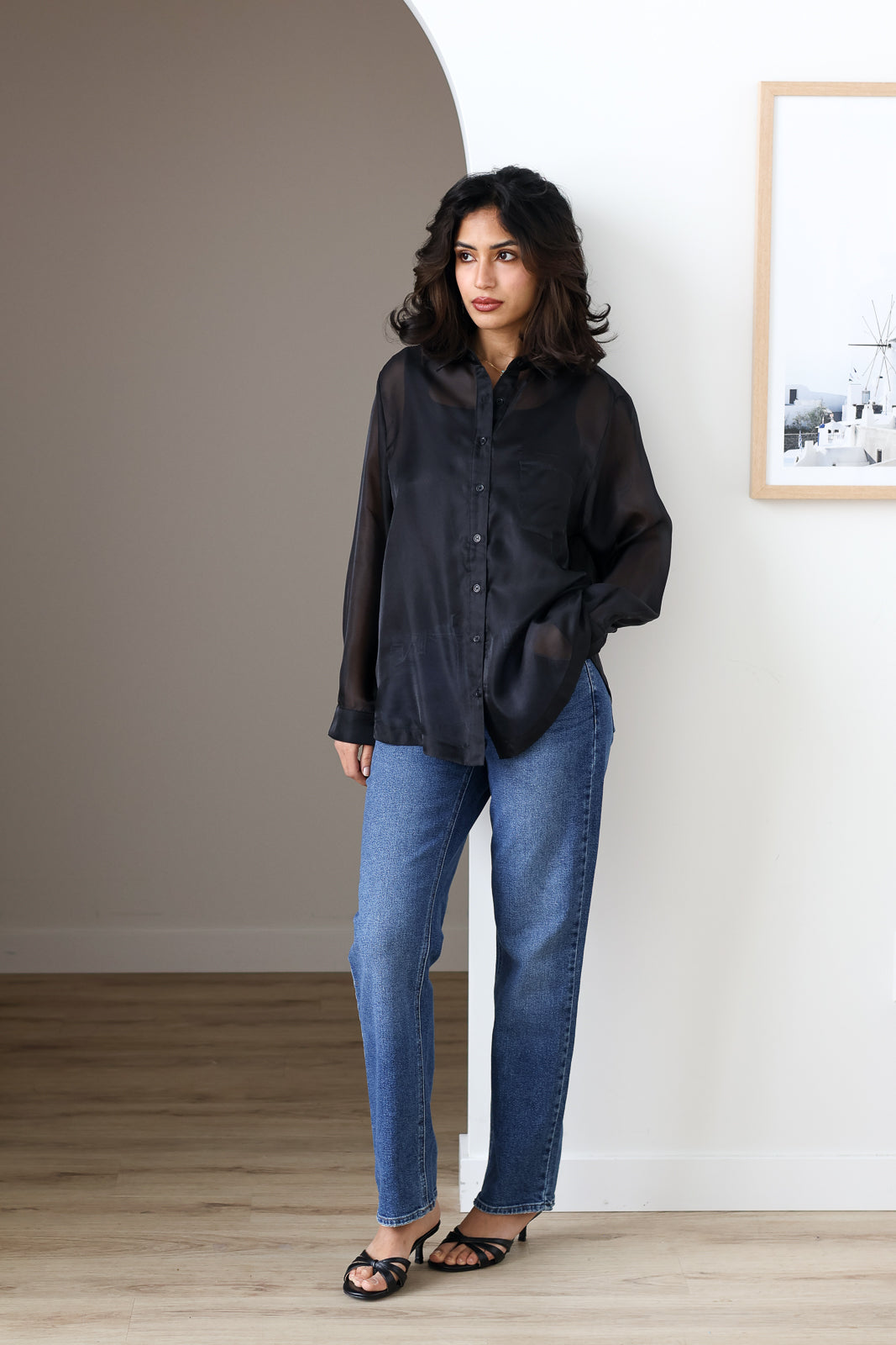 Elevate your everyday style with this stunning organza blouse that effortlessly transitions from season to season. The sheer, delicate fabric is perfect for layering—simply wear your favourite tank underneath and pair with denim or trousers for a polished, versatile look.